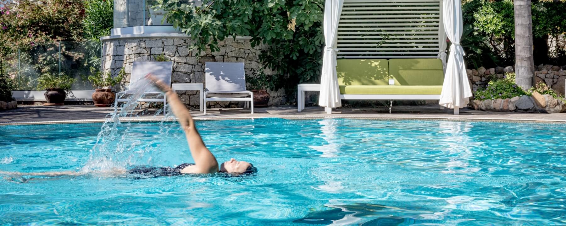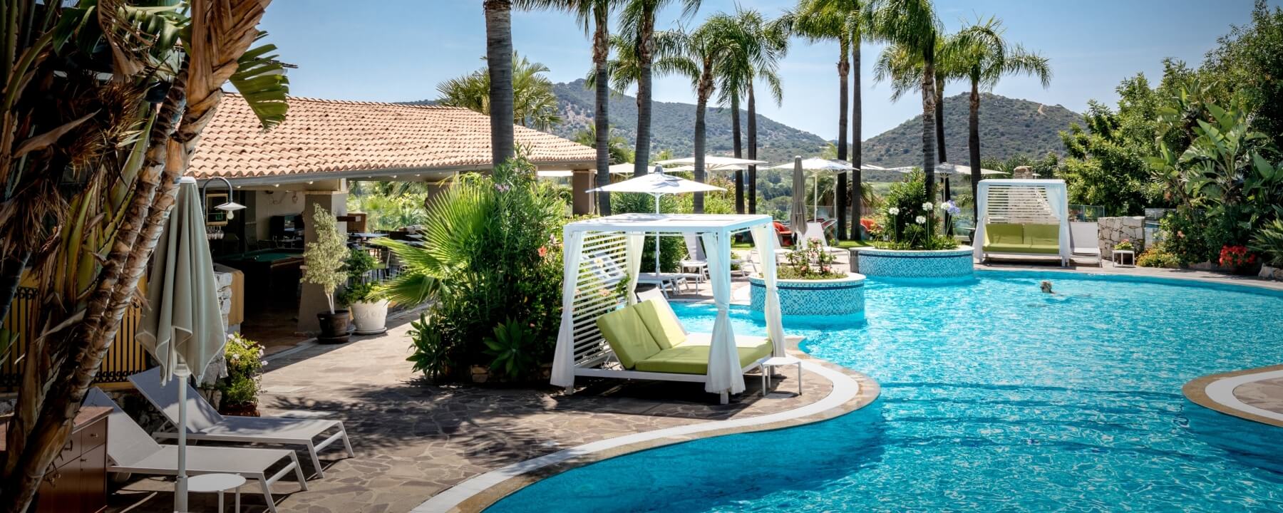Qui il tempo rallenta davvero. Tra il blu delle piscine, il verde del giardino e un silenzio che non è assenza, ma presenza.