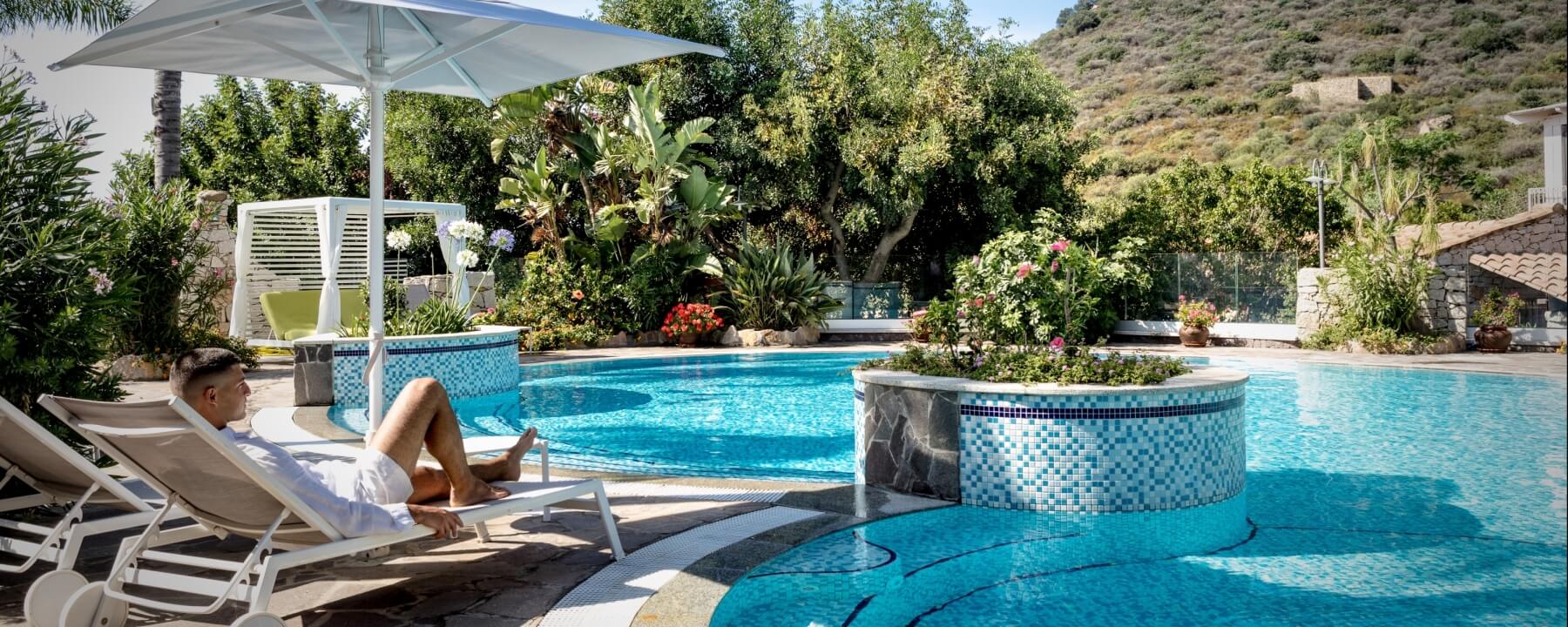 Pochi passi nel silenzio del giardino e raggiungi le due piscine attrezzate con lettini e sdraio.